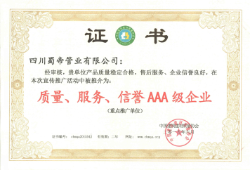 質量、服務、信譽AAA級企業證書