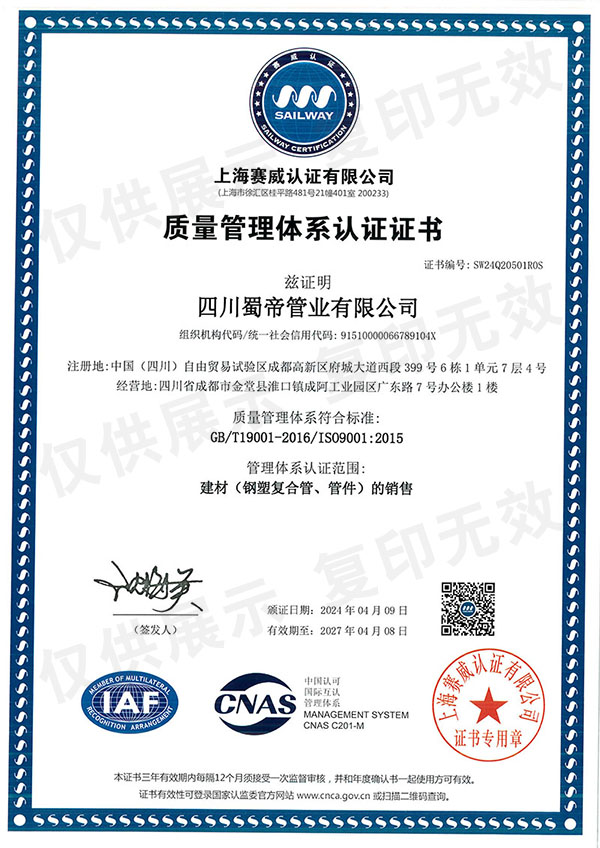 四川蜀帝管業有限公司 版權所有 Copyright (c) 2025 備案許可證: 蜀ICP備13016248號-1